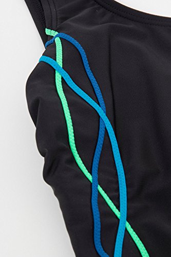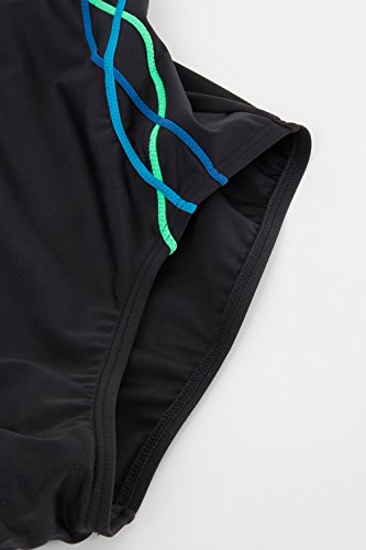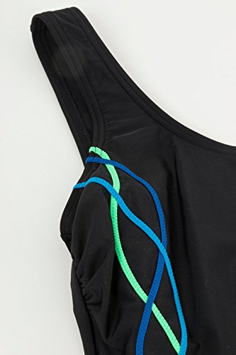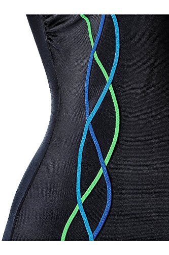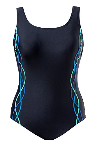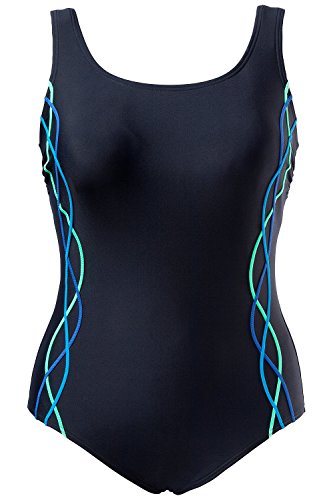 Studio : Ulla Popken Publisher : Ulla Popken Binding : Misc. Product Description Beautiful one piece Bathing Suit with Scoop Neckline. Ulla Popken Plus Size intertwined Ocean Tone Piping run along your gorgeous curves for feminine look. Trendy low cut backline. Thick shoulder straps for ultimate customized support. Bold Black Bathing Suit with Ocean Marine Blue tones - Perfect go-to One piece for the summer.