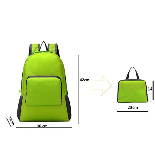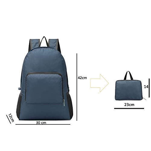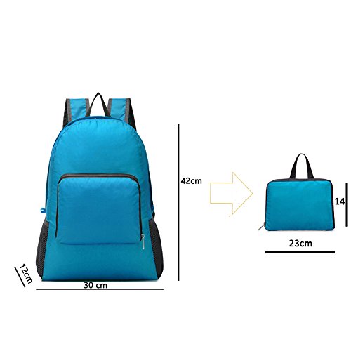 -. Feature : The backpack is perfect for day-to-day use or day trips, vacation, travel, Hiking , school, camping and shopping, and great gift for everyone. / The backpack can be folded to small bag just like the handy bag So you can easily pack it in your suitcase for use at their destination as an extra bag for the trip. / Dimensions: Unfold 16"x12"x4.7" / Made with High Quality Tear Resistant Material and Zipper / Avoid overweight charges, simply unfold from your lage and use it as a carry on for your excess baggage.
