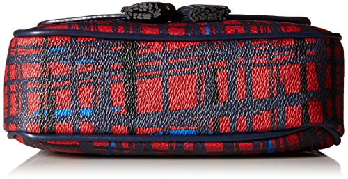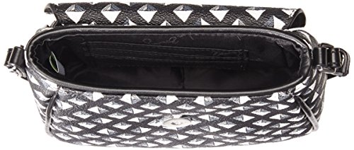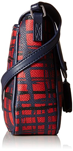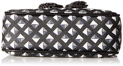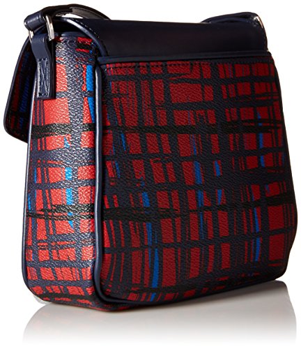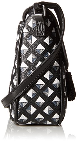 -. Feature : Patterned bag featuring solid fold-over flap with logo and decorative tassels / Adjustable cross-body strap