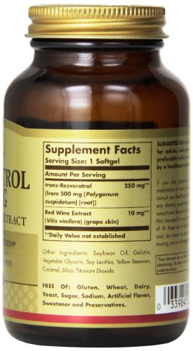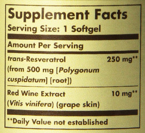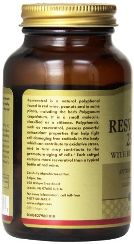 Solgar Resveratrol with Red Wine Extract Softgels, 250 Mg, 60 Count