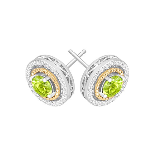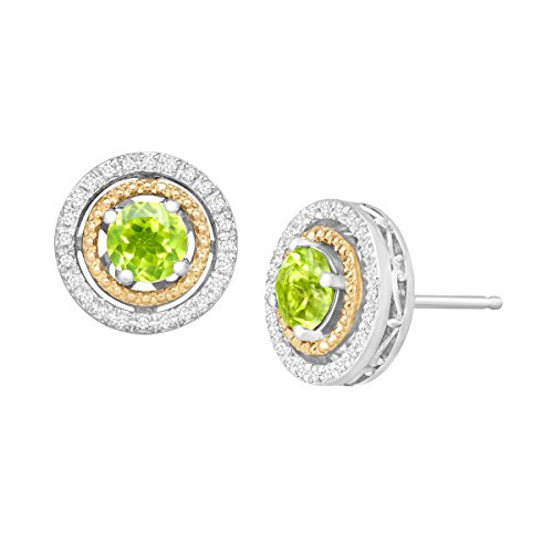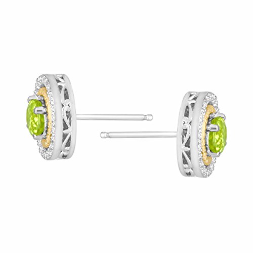 -. Feature : 1 1/5 ct Round-Cut Peridots / 1/5 ct Round-Cut Diamonds / Color I-J, Clarity I2-I3 / Sterling Silver & 14K Gold / Measures 3/8 by 3/8 Inches