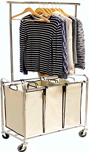 -. Title : DecoBros Heavy-Duty 3 Bag Laundry Sorter Cart with Hanging Bar