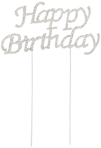 Charm 14 Happy Birthday Crystal Rhinestone Cake Topper, Silver