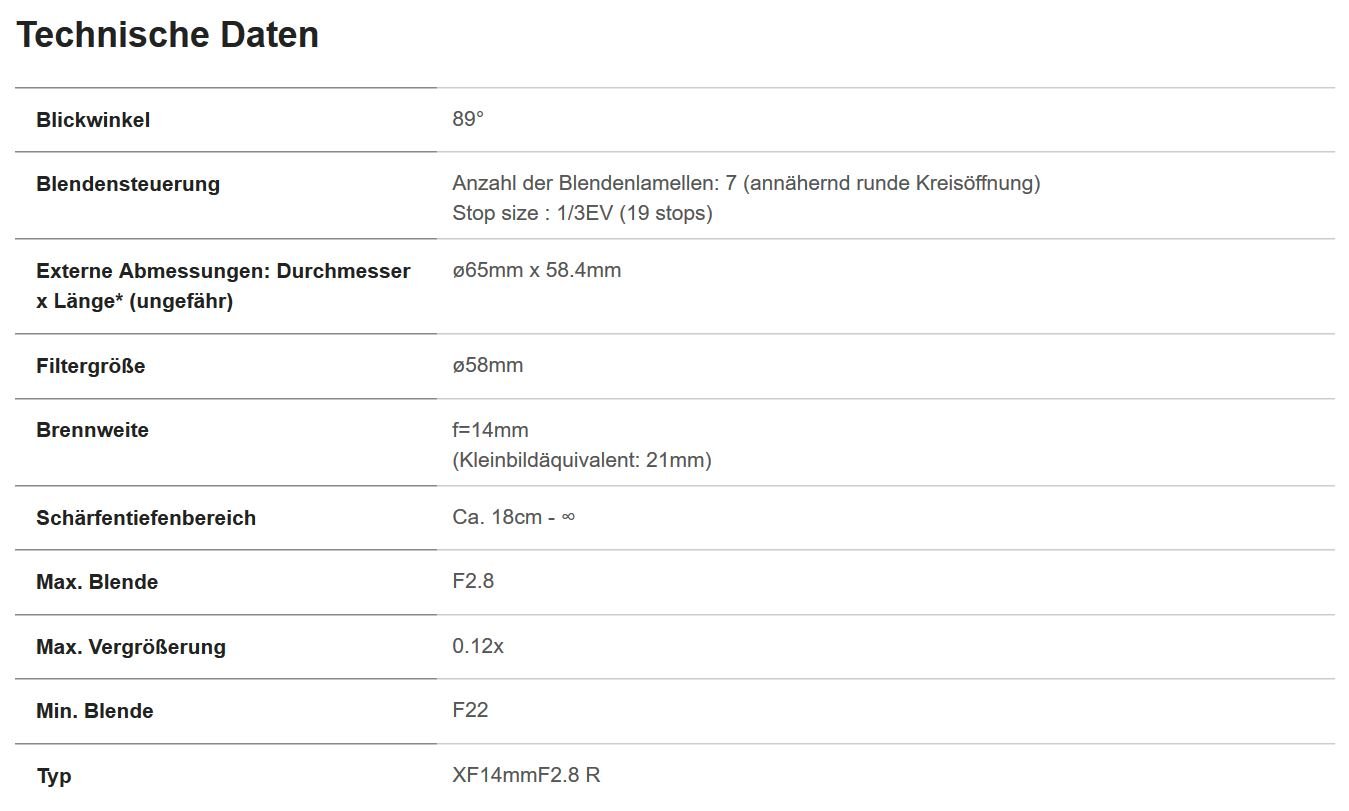 · Model number: XF 14 mm F 2.8 R