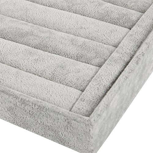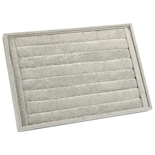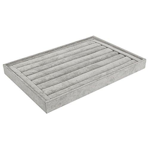 Jewelry Organizer Tray – Stackable Display Case, Ring Holder Storage Rack with 7 Rows, Grey - 13.75 x 9.5 x 1.25 inches
