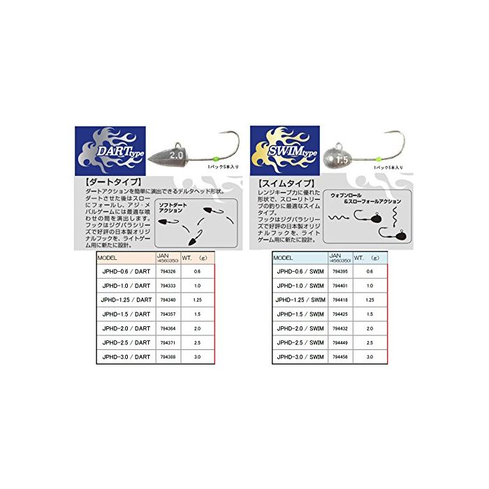 원본상품명: メジャ?クラフト ジグパラヘッド スイムモデル JPHD-2.0g