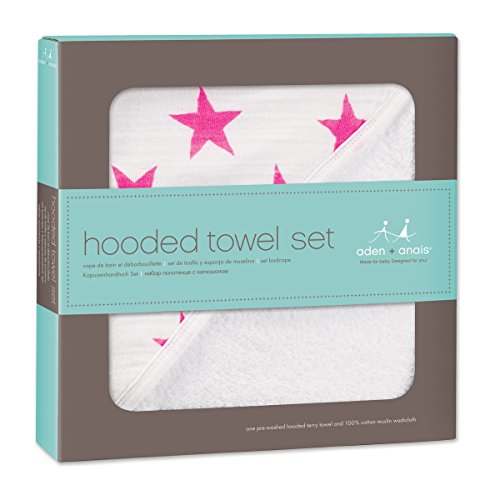 -. Title : aden + anais 3037G Classic Hooded Towel und Washcloth Set - Star, fluro pink