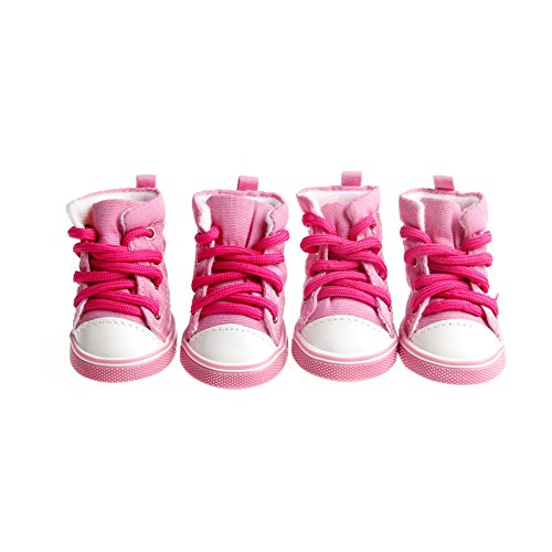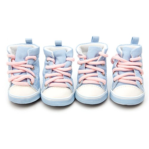 -. Feature : Feature: Lace up. / Size: XS/S/M/L/XL. / Material: Denim & Rubber Sole. / Style: Causal Sports Sneaker Shoes. / Keep your dog's paws clean, comfortable and well protected.