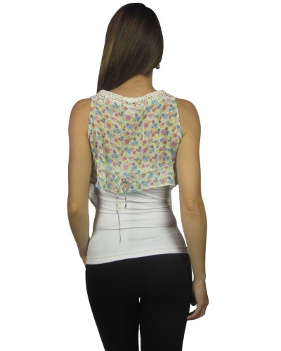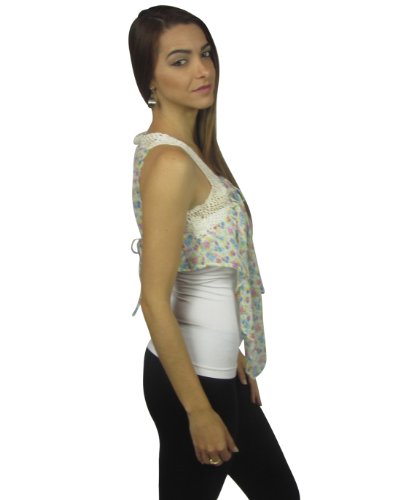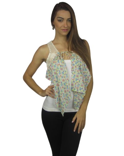 (Fashion Boom)/Women/Intimate Apparel/DIRECT FROM USA/Fashion Boom Women's Cropped Floral Print Cardigan With Lace Detail Top