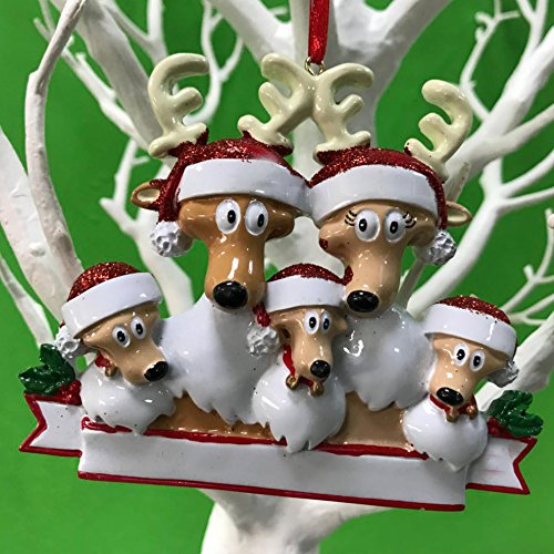 Reindeer Family of 5 Personalize Christmas Ornament, Free Pen with Gifts Box Provided