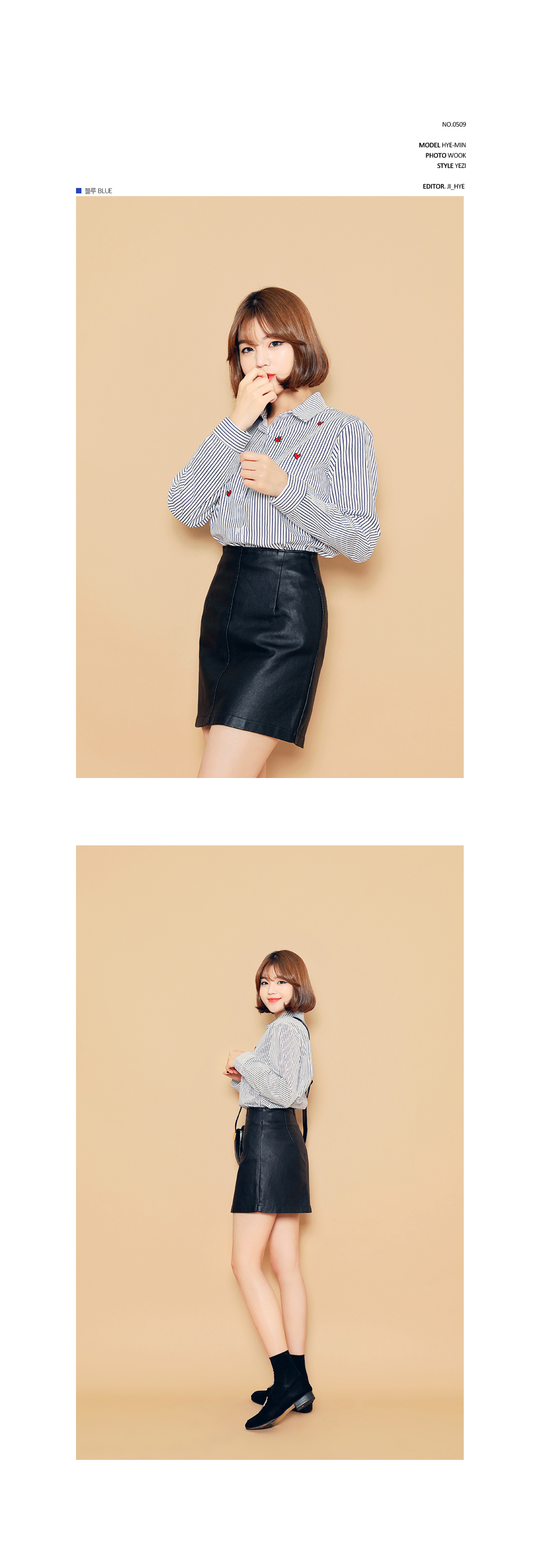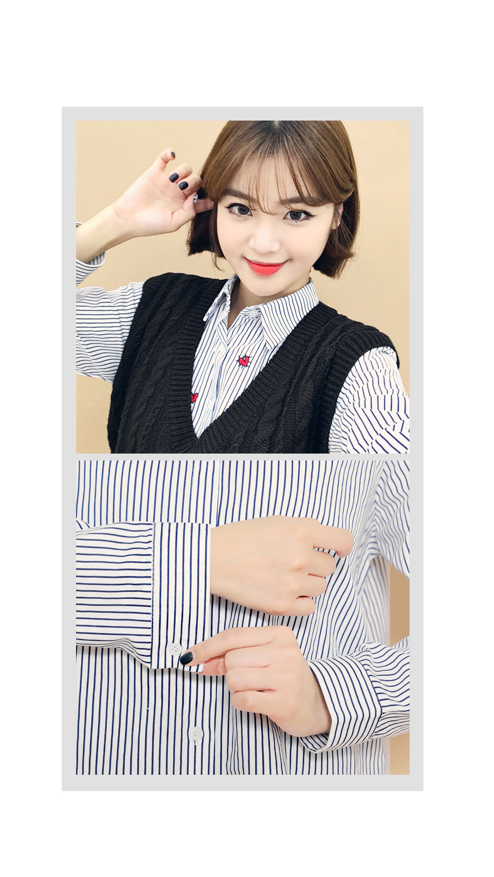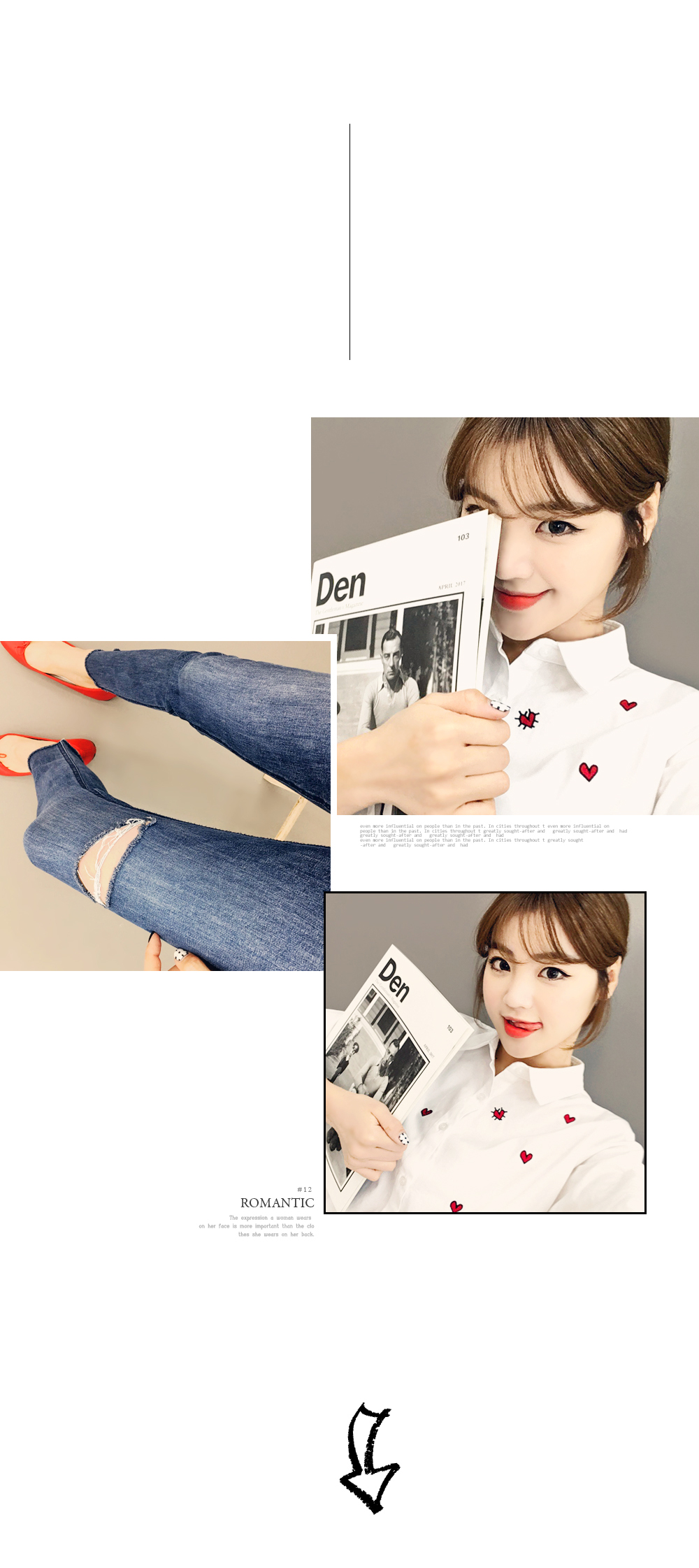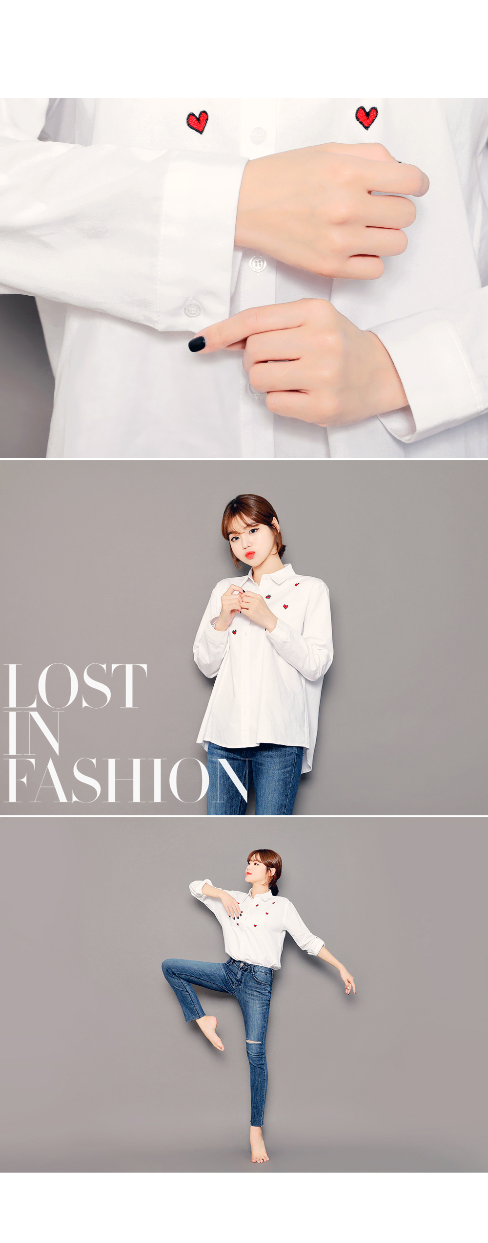 ベーシックなフィット感で、デイリー使いしやすいブラウスです。フロントのハート刺繍がラブリーなポイントに♡裾はロールアップして着られるので、様々な雰囲気を楽します♬シンプルながらもコーデのポイントになります。ホワイトとブルーストライプの2色展開です。