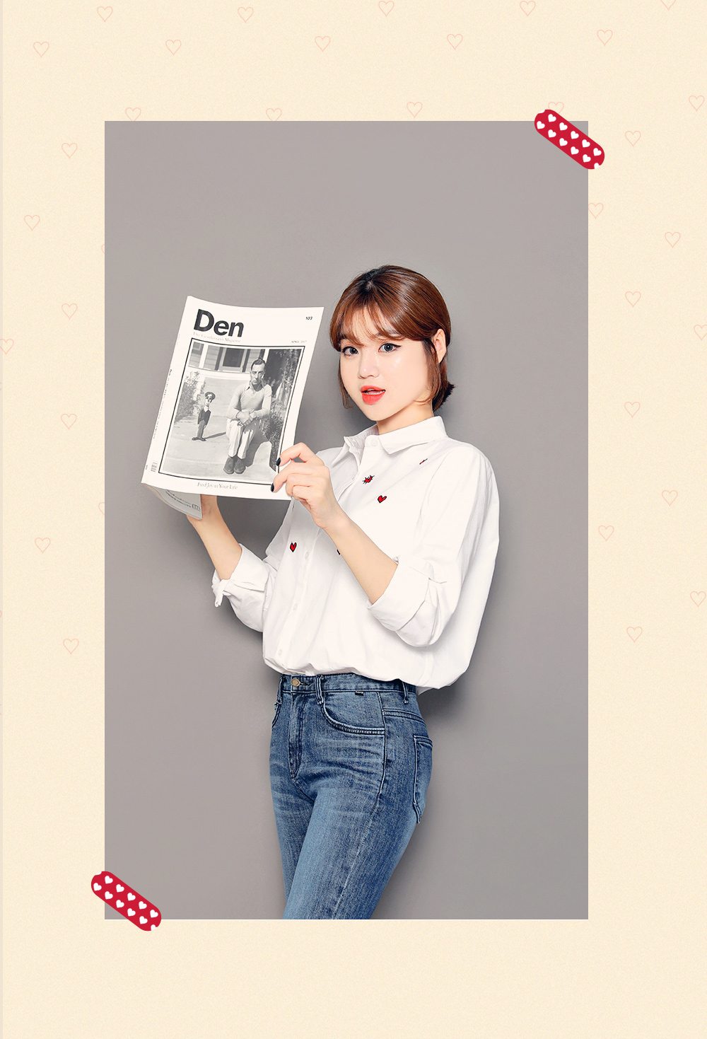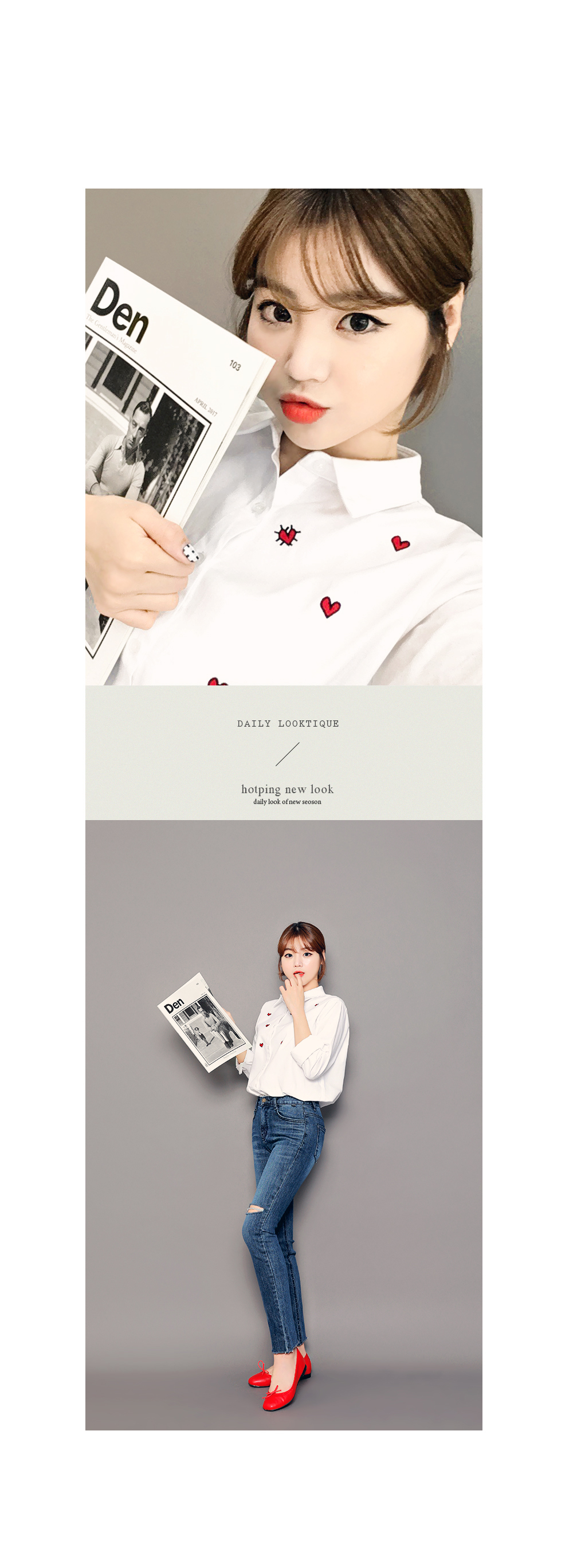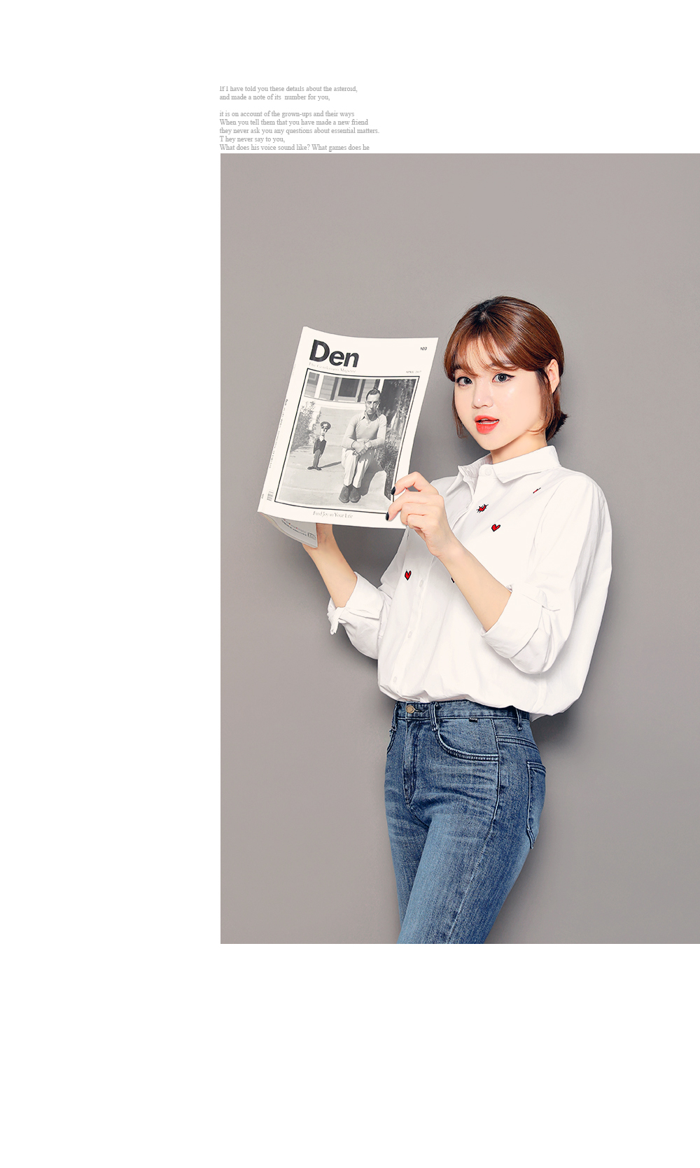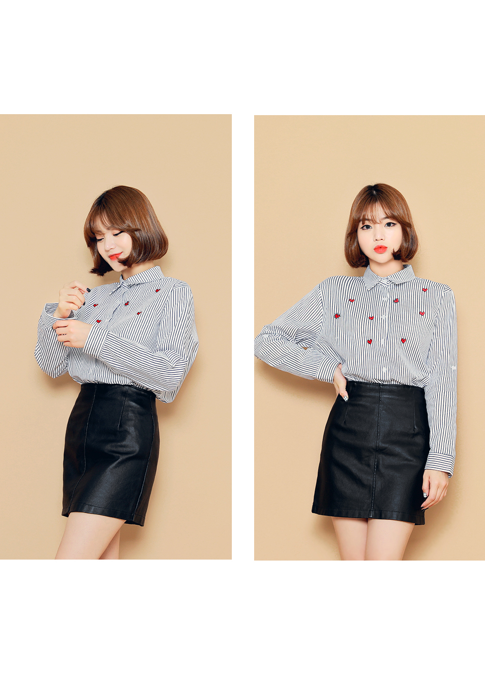 ベーシックなフィット感で、デイリー使いしやすいブラウスです。フロントのハート刺繍がラブリーなポイントに♡裾はロールアップして着られるので、様々な雰囲気を楽します♬シンプルながらもコーデのポイントになります。ホワイトとブルーストライプの2色展開です。