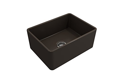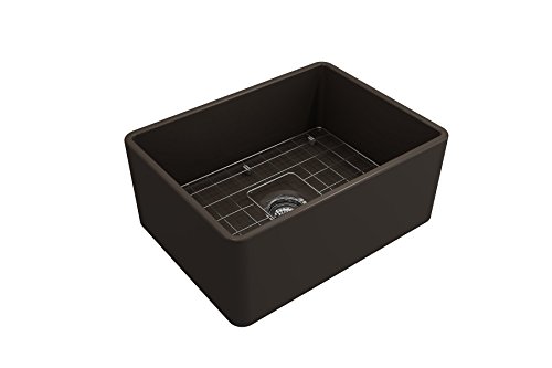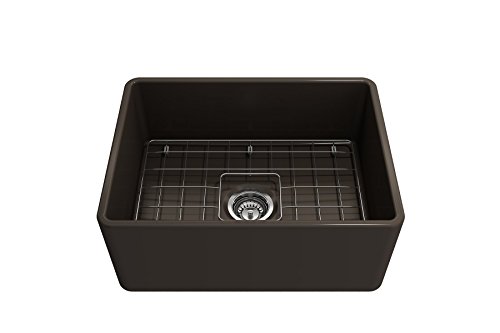 Classico Farmhouse Apron Front Fireclay 24 in. Single Bowl Kitchen Sink with Protective Bottom Grid and Strainer in M. Brown