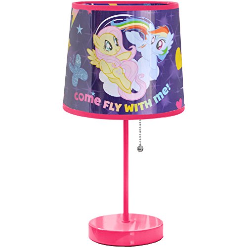 ReleaseDate : 2017-06-16 Studio : Idea Nuova - LA Publisher : Idea Nuova - LA Binding : Toy Product Description Add a fun theme to a kid's bedroom, playroom or study area with this colorful and functional My little pony table lamp. It is constructed of sturdy and durable materials. This child's table lamp features a metal base and a colorful canvas shade. Featuring bright, fun and feminine colors, it's sure to delight little girls everywhere. The My little pony lamp holds adorable images of the My little pony gang, with rainbow Dash and Flutter shy playing together on one side. Its size allows it to fit easily onto a desk, dresser or side table. Pair it with additional My little pony merchandise and bedding to create a cohesive look, or pair it with other pink and purple items for a rich, feminine decor theme.?. 0