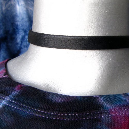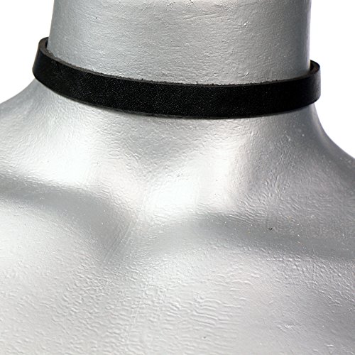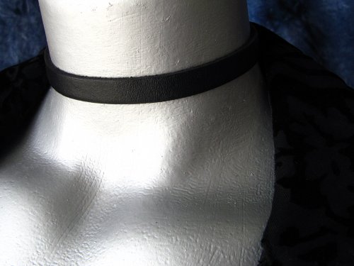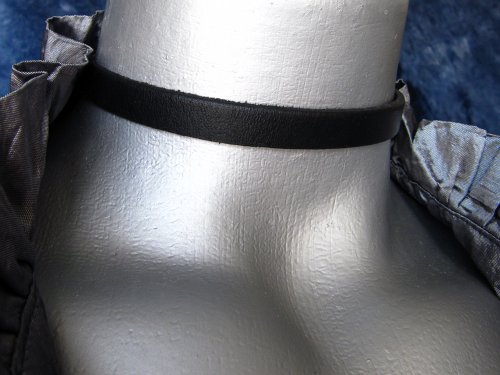 Twilight's Fancy 3/8" (10mm) Thin Black Leather Choker Collar Necklace (Small)
