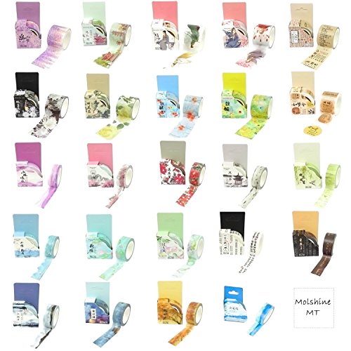 Molshine 24 Sets Decorative Japanese Washi Masking Adhesive Sticky Paper Tape –Chinese Classical Poetry Series Collection, (10 rolls 30mm X 5m , 14 rolls 15mm X 7m) for Journals, Daily Planners DIY