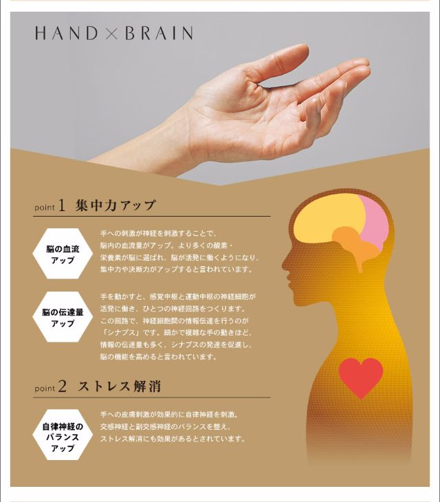 手への刺激が神経を刺激することで、脳内の血流量がアップ。