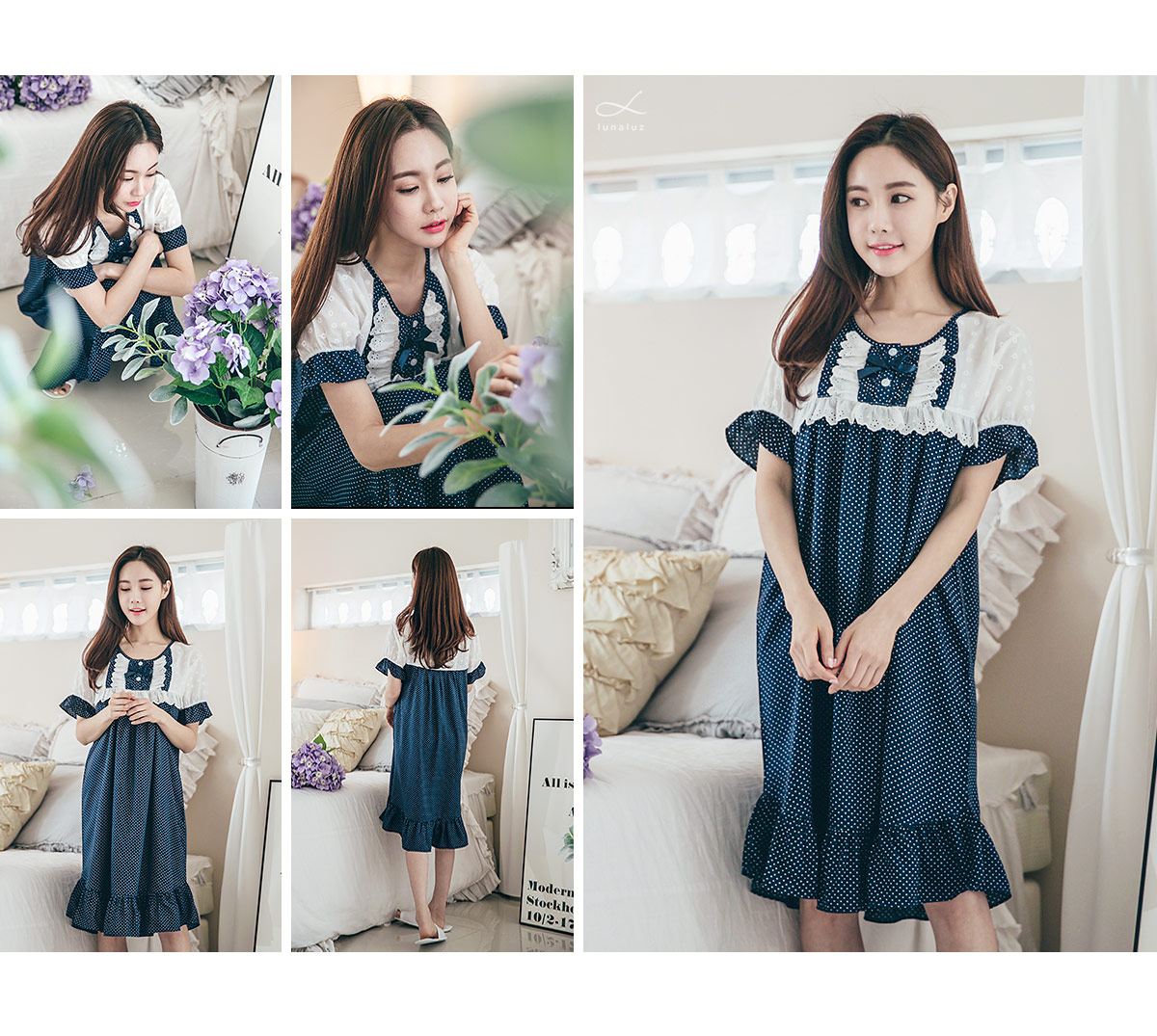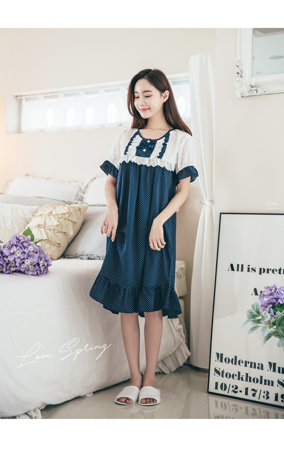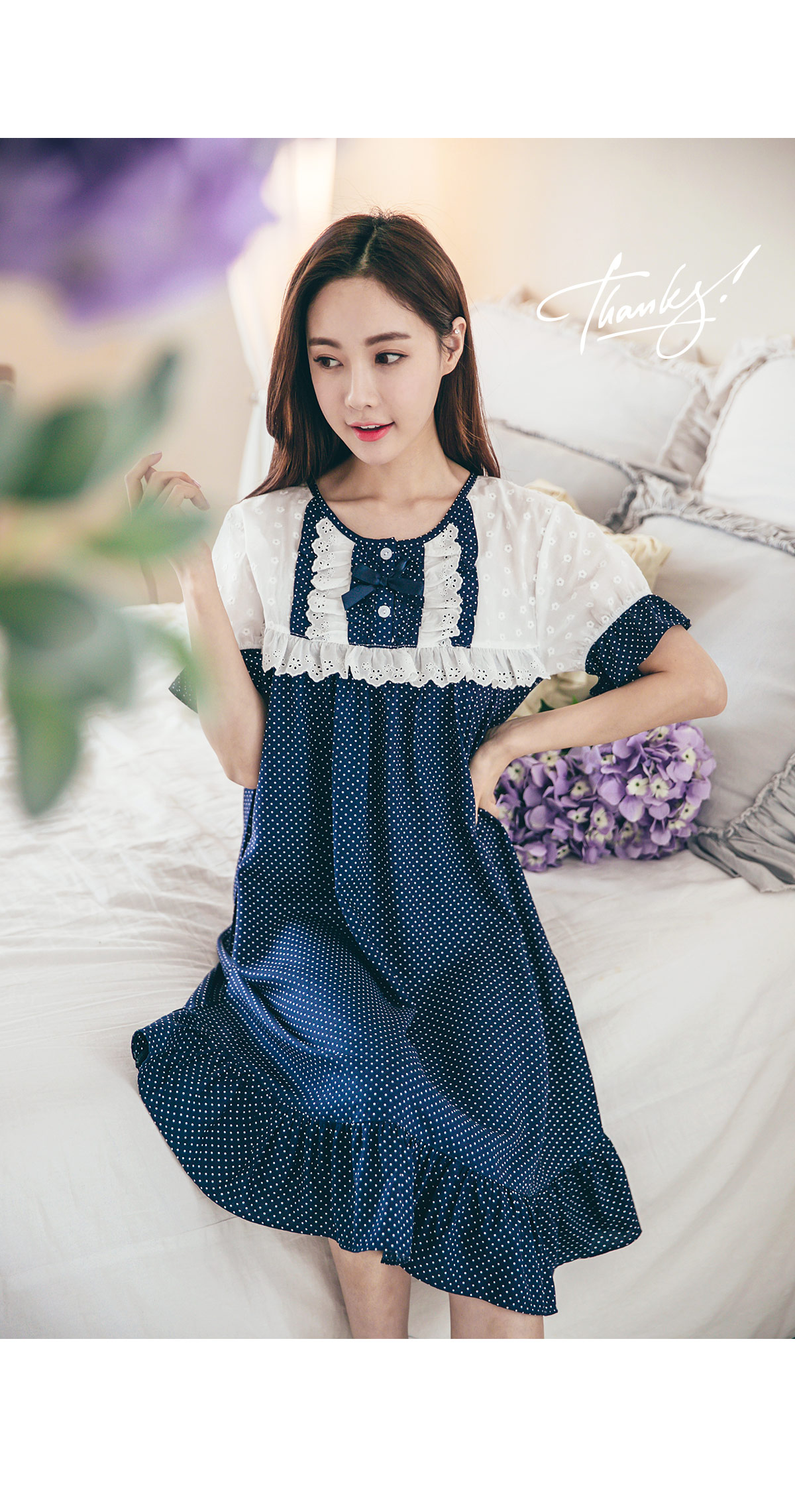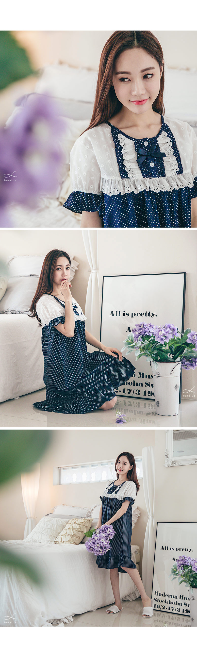 전체 올오버 면을 포인트로 제작한 잠옷이에요 :> 소매 부분은 살짝 볼륨있게 잡아주어 걸리쉬 느낌이 나는데요. 화이트 컬러의 플라워 자수 올오버 면을 응용하여 작업한 디자인으로 분위기가 화사하게 살아나요. 얼굴빛이 환해 보이고, 러블리하여 커플로 입으셔도 정말 예쁠 거에요. 촤르르 떨어지는 드레스 부분은 드레이프성이 좋은 레이온 소재로 체형을 좀 더 날씬하게 보완해주었어요. 실루엣이 예뻐 보이는 레이온 소재와 플라워 자수의 올오버 면이 포인트가 되어주어 디자인이 더욱 살아난답니다. 색다른 느낌이 드는 홈웨어 스타일로 추천해 드리고 싶어요. 하나하나 세심하게 봉제 작업이 들어간 잠옷으로 그 만큼 소장가치가 높습니다. 시원하고 상쾌한 느낌이 도는 레이온 소재는 더운 여름 상쾌하고 산뜻하게 입기 좋습니다. 소재가 굉장히 실키하여 피부에 닿는 느낌이 좋고, 피부가 민감하신 고객님들에겐 더 추천하고 싶은 잠옷입니다. free사이즈로 평소 44반~66size까지 입으실 수 있는 패턴입니다. 100%국내 제작으로 소재가 좋고, 봉제선이 깔끔하며 디자인에 퀄리티를 높여 주었습니다.