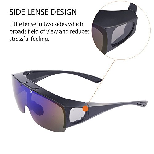 SPECIAL SUNGLASSES-Fit over regular prescription glasses or reading glasses! It is mirrored and barely sees that there are eyeglasses underneath them.