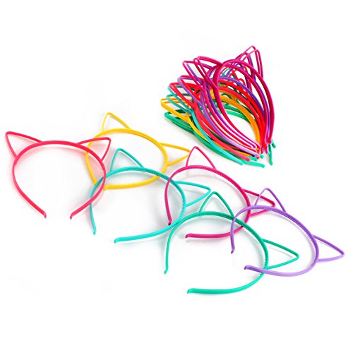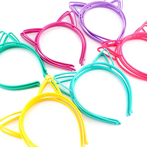 -. Feature : FOR ALL KINDS OF EVENTS: Wear our cat ears for Halloween costumes, for a themed birthday party, for a special event such as Broadway's "Cats", or for everyday fun & dress-up / COLOR BUNDLE OF 24: 24-pack with 6 different colors, great for teams by color or matching your clothes every day or for party favors; comes with purple, yellow, teal, green, rose pink, bright pink / ONE SIZE FITS MOST: Flexible to stretch to fit child to adult heads / ALL PLASTIC: Plastic with grippy teeth on inner curve, keeps from slipping on your head/hair / DIY TOO: You can use these as a base to add your own DIY cloth or metallic accents and enjoy crafting activities