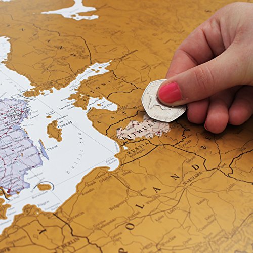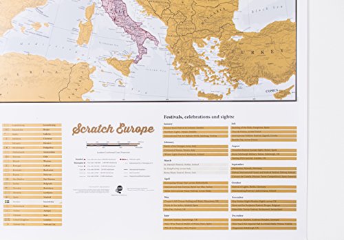This brilliant concept map allows you to scratch off visited destinations to reveal a beautifully styled up to date Europe map underneath. It's the perfect map or unique gift for the travel enthusiast, allowing complete personalisation to display a unique travel story. To scratch off the map simply grab a coin and start scratching off the destination's you have been lucky enough to visit. Not only are countries featured on the map, there are also cities shown on the top layer and the Europe map underneath, allowing for more detailed scratching. This Scratch Europe poster is perfect for planning your next holiday locations.Frame not included: The print is a standard A1 size and will fit any A1 sized frame, widely available.