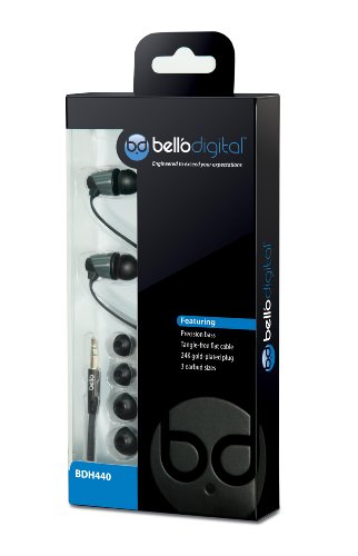 Bell'O Digital BDH440 Precision Bass-Ear Earbud Stye Headphone, Chrome/Matte Black