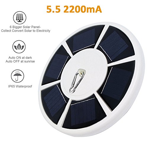 HIGH EFFICIENCY & ENERGY SAVING: Automatically turnning on at night and off at daytime (after you turn on the power switch) and powerful built-in 2200mAh batteries store sufficient energy for whole night use after a fully sunny day's charging