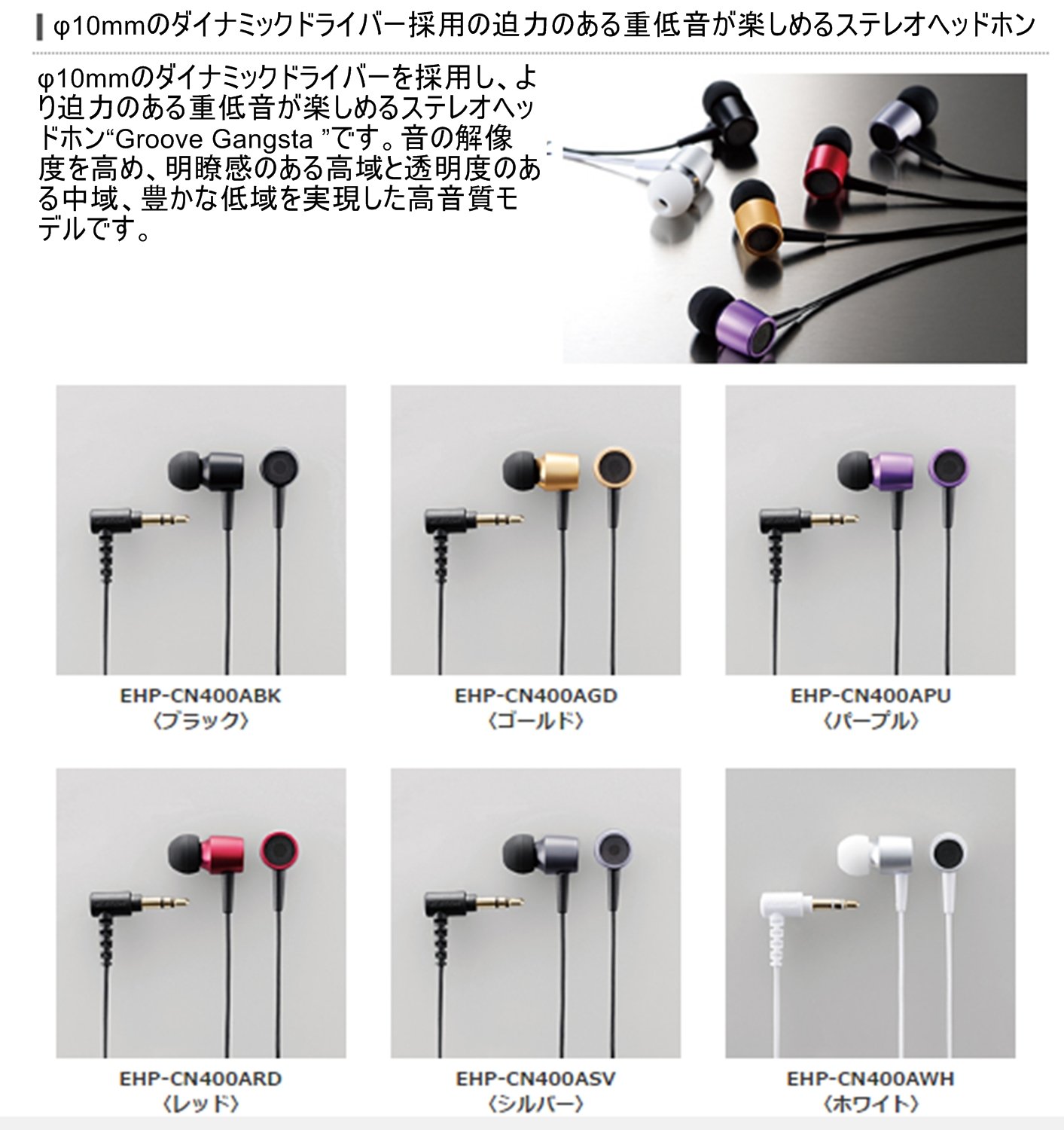 ■ It is a stereo headphone "Groove Gangsta" which adopts a dynamic driver of φ10 mm and can enjoy more powerful deep bass.