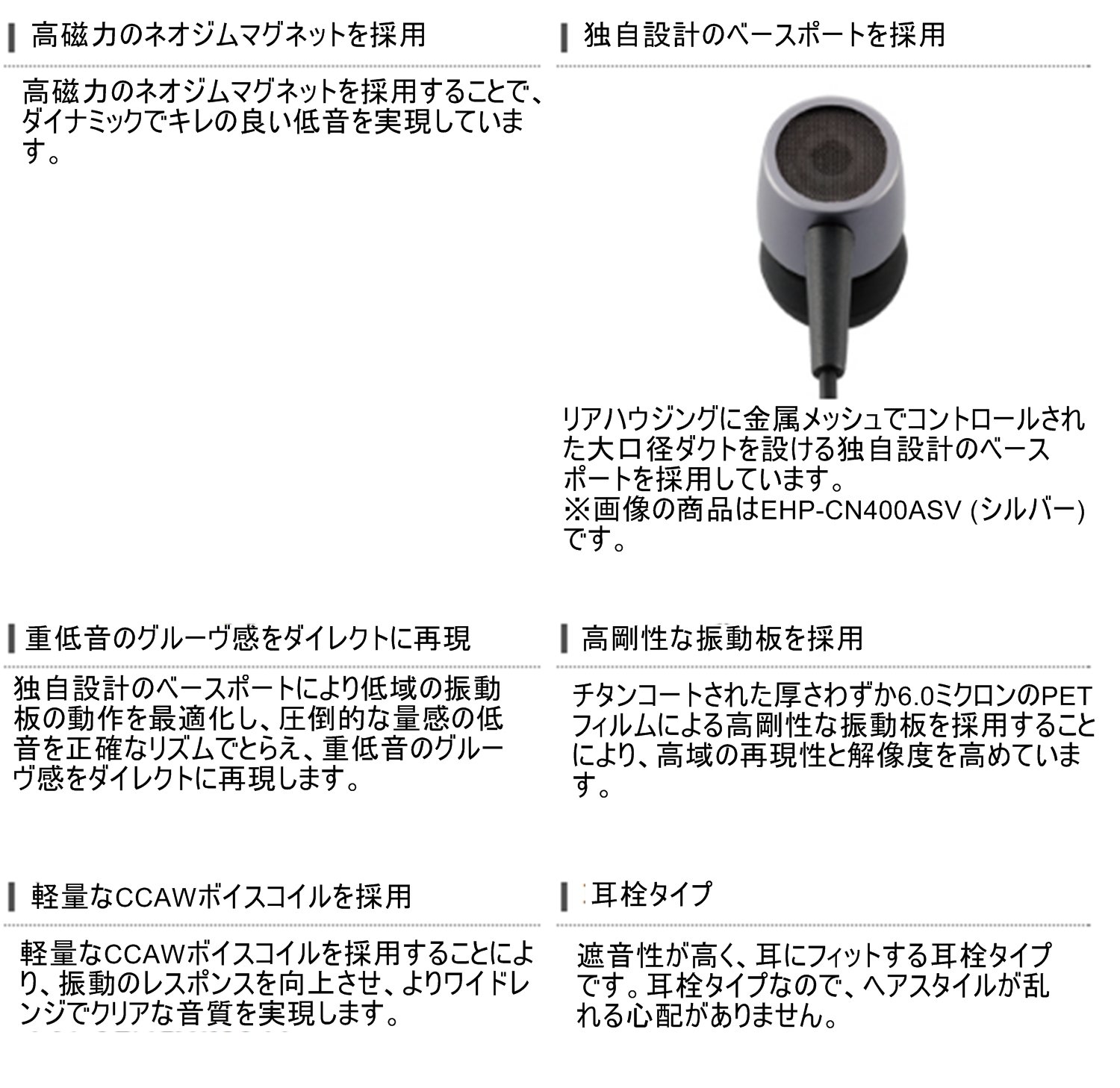 ■ By adopting a high magnetic neodymium magnet, it achieves dynamic and sharp bass.