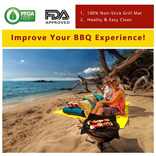 - 100% NON-STICK: Improve your barbeque experience and your grill mess-free. No need to use OILS or FATS ever again, heavy duty grill mat surface making your food tastier and much healthier.