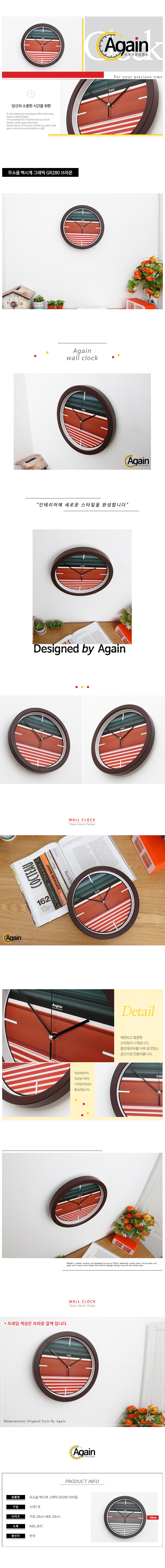 - 품명 및 모델명무소음 벽시계 그래픽 GR280 브라운