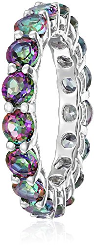 Sterling silver eternity band studded with mystic topaz rounds set in shared prongs