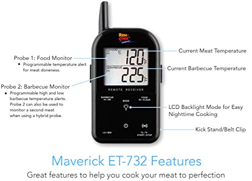 PERFECT FOR LONG COOKS – The Maverick ET-732 Redi-Check also has built in alerts to let you know when your BBQ or smoker is going above or below the desired temperature. It’s perfect for long cooks, especially when you don’t want to be standing outside all day.