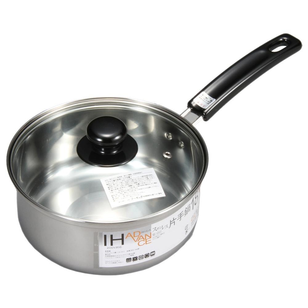 fk094igrjs中が見えて便利なガラス蓋付きです使い勝手の良い、直径18cmタイプです サイズ 36×20×10cm、本体板厚:約0.5mm、蓋ガラス厚:4mm 個装サイズ:36×20×10cm 重量 個装重量:660g 素材・材質 本体:ステンレス鋼(18-0ST) 蓋:全面物理強化ガラス ハンドル・つまみ:フェノール樹脂 仕様 IH(200V)対応 食洗機使用不可 生産国 中国 IH対応の蓋付き片手鍋です 中が見えて便利なガラス蓋付きです使い勝手の良い、直径18cmタイプです
