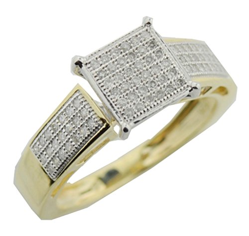 -. Feature : Item Type: Engagement Ring, Metal Type: 10K Yellow Gold, Gem Type: White diamonds, Gender: Ladies / Elegant square top pave set diamond ladies engagement ring with 0.250ctw Diamonds in 10K Gold / Ring measures 7mm at the widest point on top / Beautiful Ring box is included with the purchase / Available in Standard size 7, for all other sizes ring will be sized before shipping