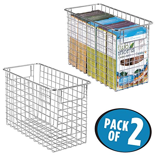 mDesign Kitchen Pantry Organizing Wire Basket with Handles, 12" x 6" x 8" - Pack of 2, Chrome
