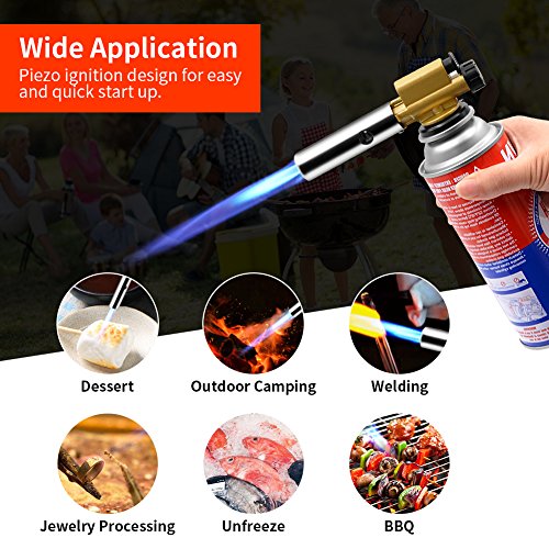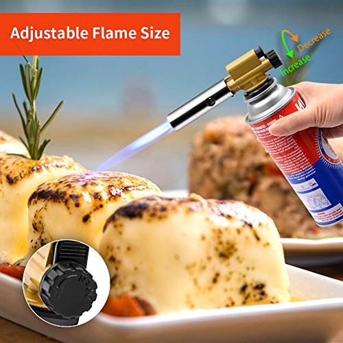 - 2372℉/1300℃: Flame temperature of kitchen torch up to 2372℉/1300℃. With gas adjustment knob, you adjust the size of the flame for different purpose. It is hot enough to cooking even melting gold and silver for industrial use.