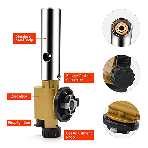 - EASY TO OPERATE: Install the butane canister to the soldering torch, rotate gas adjustment valve about 30 degree, then ignite.