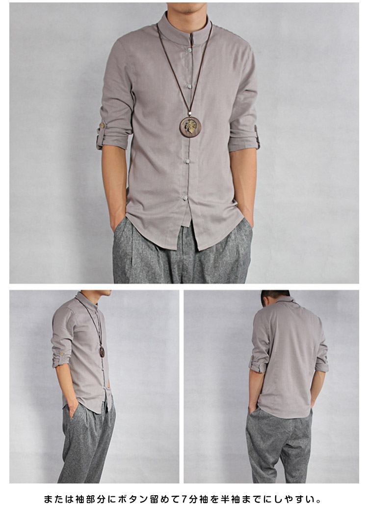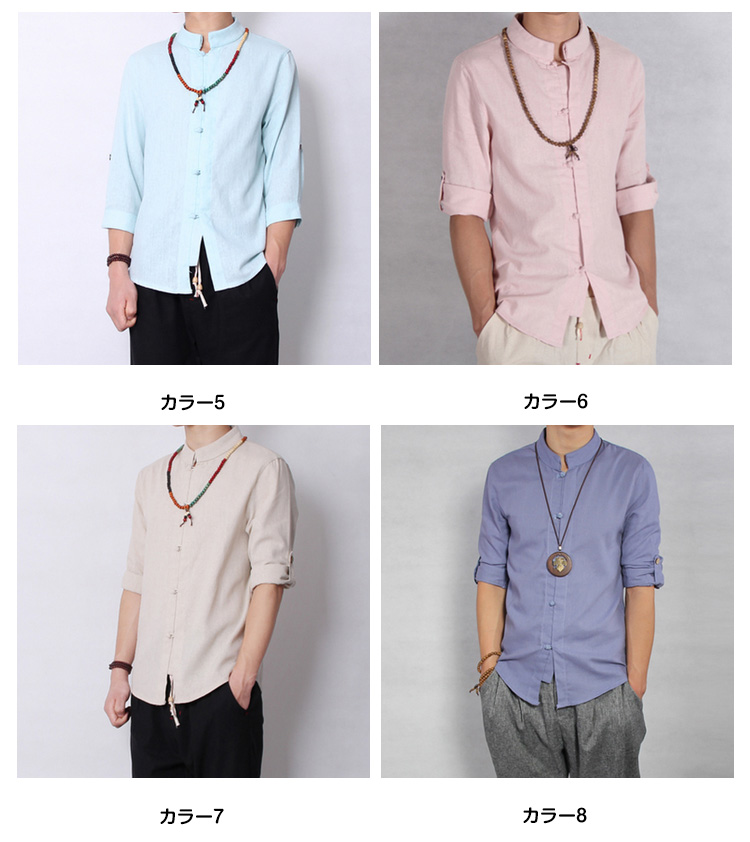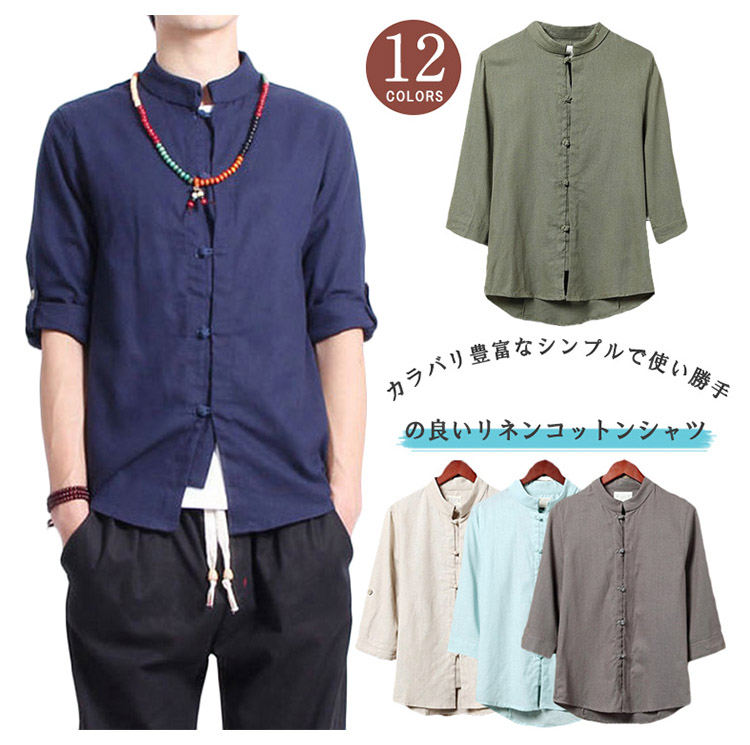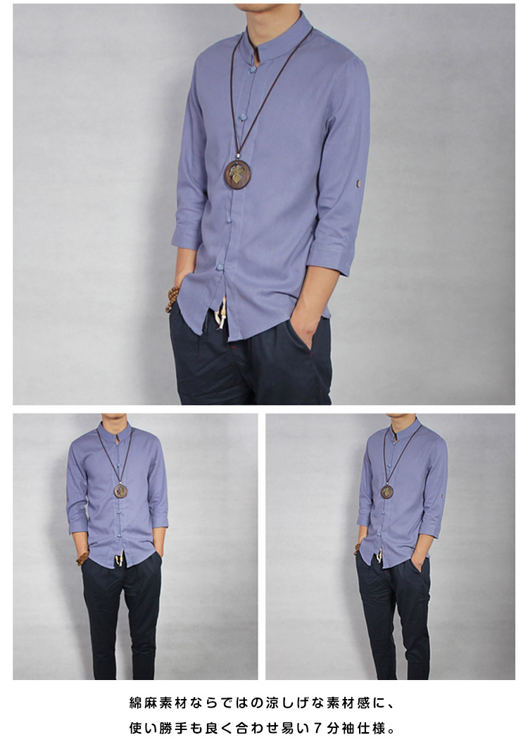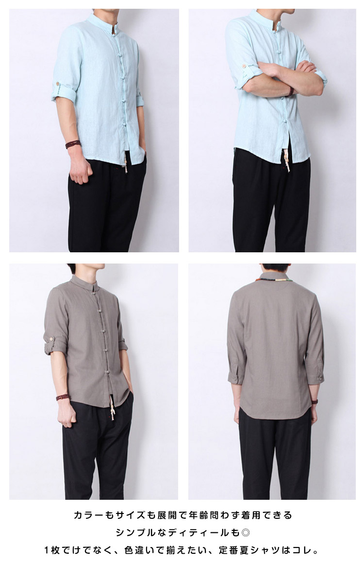 | カラバリ豊富なシンプルで使い勝手の良いリネンコットンシャツ綿麻素材ならではの涼しげな素材感に、使い勝手も良く合わせ易い7分袖仕様。または袖部分にボタン留めて7分袖を半袖までにしやすい。襟元がスッキリ見えるスタンドカラーを採用し、トレロ雰囲気なチャイナ風になります。カラーもサイズも展開で年齢問わず着用できるシンプルなディティールも◎1枚でけでなく、色違いで揃えたい、定番夏シャツはコレ。 | |