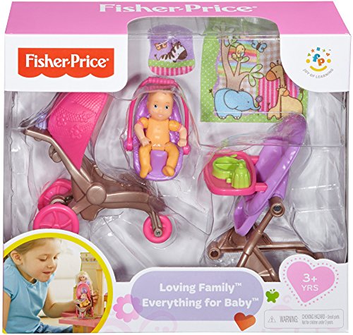 Includes: baby, soft baby blanket, bouncer, entertainer, diaper bag, high chair and stroller with working wheels