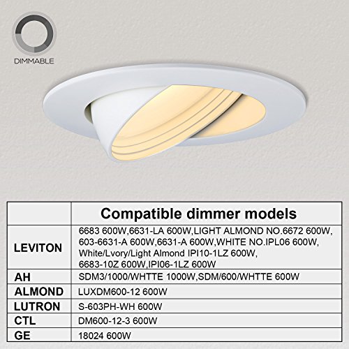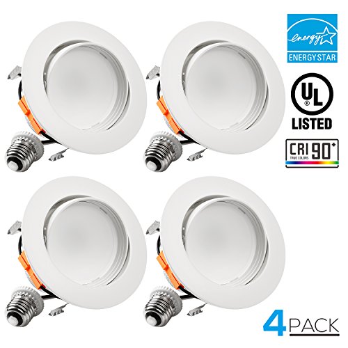 4-Inch LED Gimbal Recessed Retrofit Downlight, 10W (65W Equiv.), High CRI90+Dimmable Directional Ceiling Light Fixture, ENERGY STAR, UL-listed, 3000K Warm White, 5 YEARS WARRANTY, Pack of 4