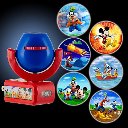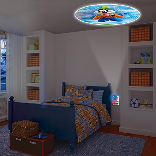 Transform your child's room with this Projectables Night Light featuring Mickey Mouse and friends! The Projectables LED night light provides a soothing guide light while projecting one of six Mickey Mouse Clubhouse images on the wall, ceiling, or floor. It uses light-sensing technology to turn on at dusk and off at dawn. Long-life, energy-efficient LEDs are cool to the touch making this night light safe for any room in your home. It's perfect for kids of all ages.Feature