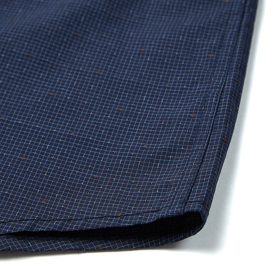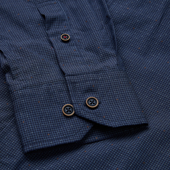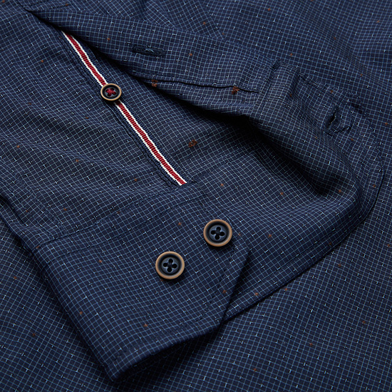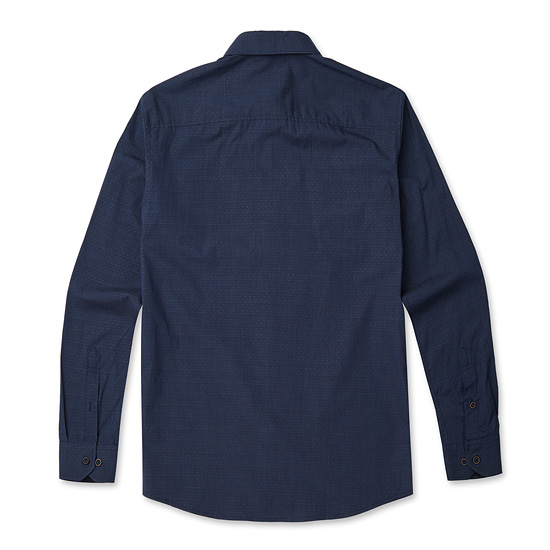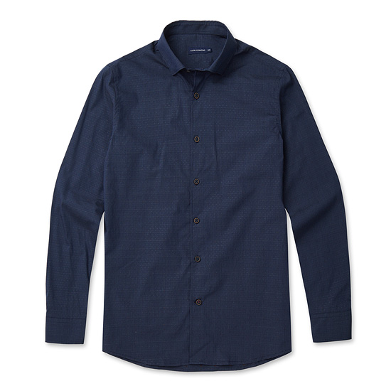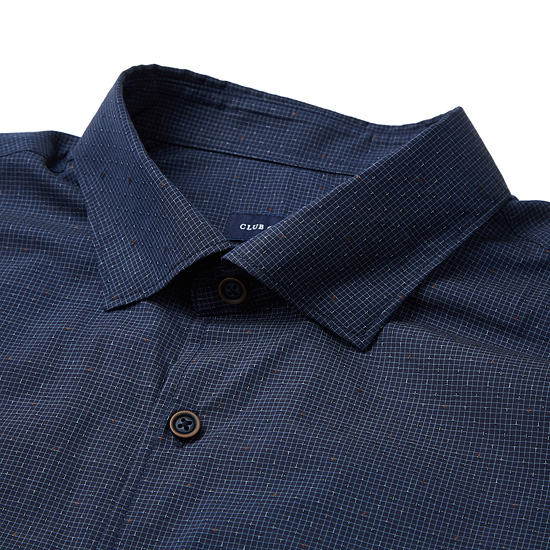 - 잔잔한 마이크로 패턴에 자수를 적용한 남성 셔츠.