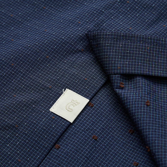 - 딥한 네이비 컬러에 마이크로 패턴 자수로 세련된 무드.