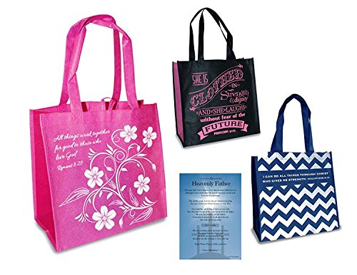 Christian Religious Message, Reusable bag, Eco Friendly, 12 x 12 Pack of 3 Tote Bags by Lightdog Unlimited