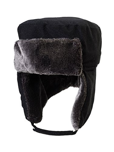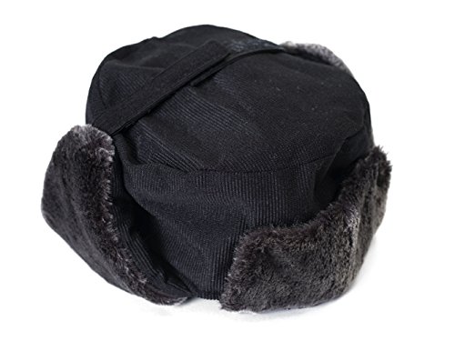Product Description A winter hat that is simply darling! The corduroy dog ear hat is designed for those who want to stay warm and fashionable this winter. The material is extremely warm and soft, and will have you delight in wearing. The lovely fur flaps can be worn up or down to your preference. You won't even need earmuffs to keep your ears warm. With easy to use strap, wear the flaps down, keeping your ears covered. Or on days you wish to wear them up, stick the strap back up, exposing the fur. And what says chic and glam better than fur? For your comfort, this marvelous item is finished with an incredibly soft inner lining. How can you resist an affordable chic winter hat that is comfortable and offers you the utmost warmth and protection? What more could you want in a winter hat? Made of 55% cotton and 45% polyester. ONE SIZE fits most, fitting up to 7-3/8. Crown measures 4 high, Lined indise. Earflaps measure 5 long with strap closure. Attached bill measures 3 tall. Thick, soft and warm material. Available in black, grey and navy. Imported. 0