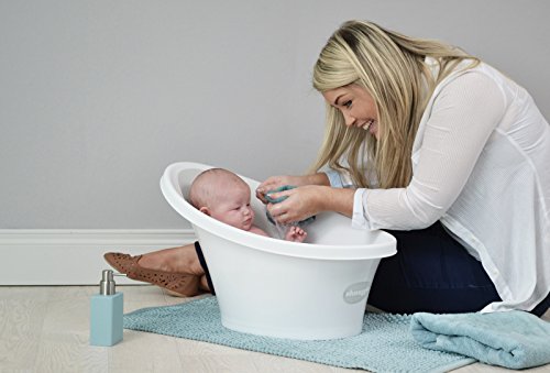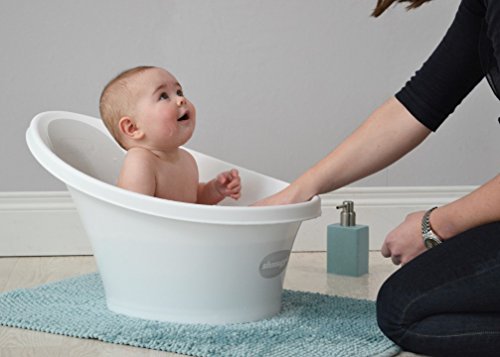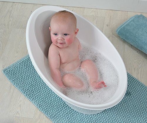 The snuggle bath makes baby bath times easier and safer. The beautiful design with smooth curves and flowing roll top is perfectly shaped for your baby from birth (stage 1) right up to 12 months (stage 2) The bathtub features an integrated bum bump which helps to support your baby while they recline in the early months, giving you both hands free to wash and play with baby. When baby starts to sit forward (stage 2), the bum bump gives support and confidence making bath time more fun. The large foam backrest is soft and warm to touch, making bath time more comfortable and when used with bath water at the ideal temperature of 100°f, your baby can enjoy a longer bath without getting cold. The small size makes it ideal to use in the bath, shower, kitchen sink or on the floor and as it is lightweight to easily carry when filled with water. There are rubber feet on the base for safety and the bath is fully compliant with all applicable safety regulations. Designed in the UK and winner of the international red dot design award.Feature