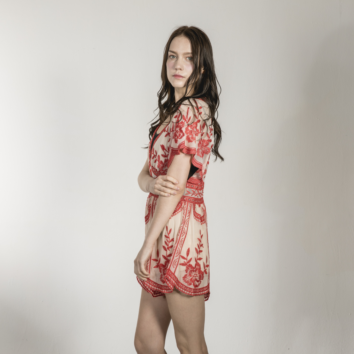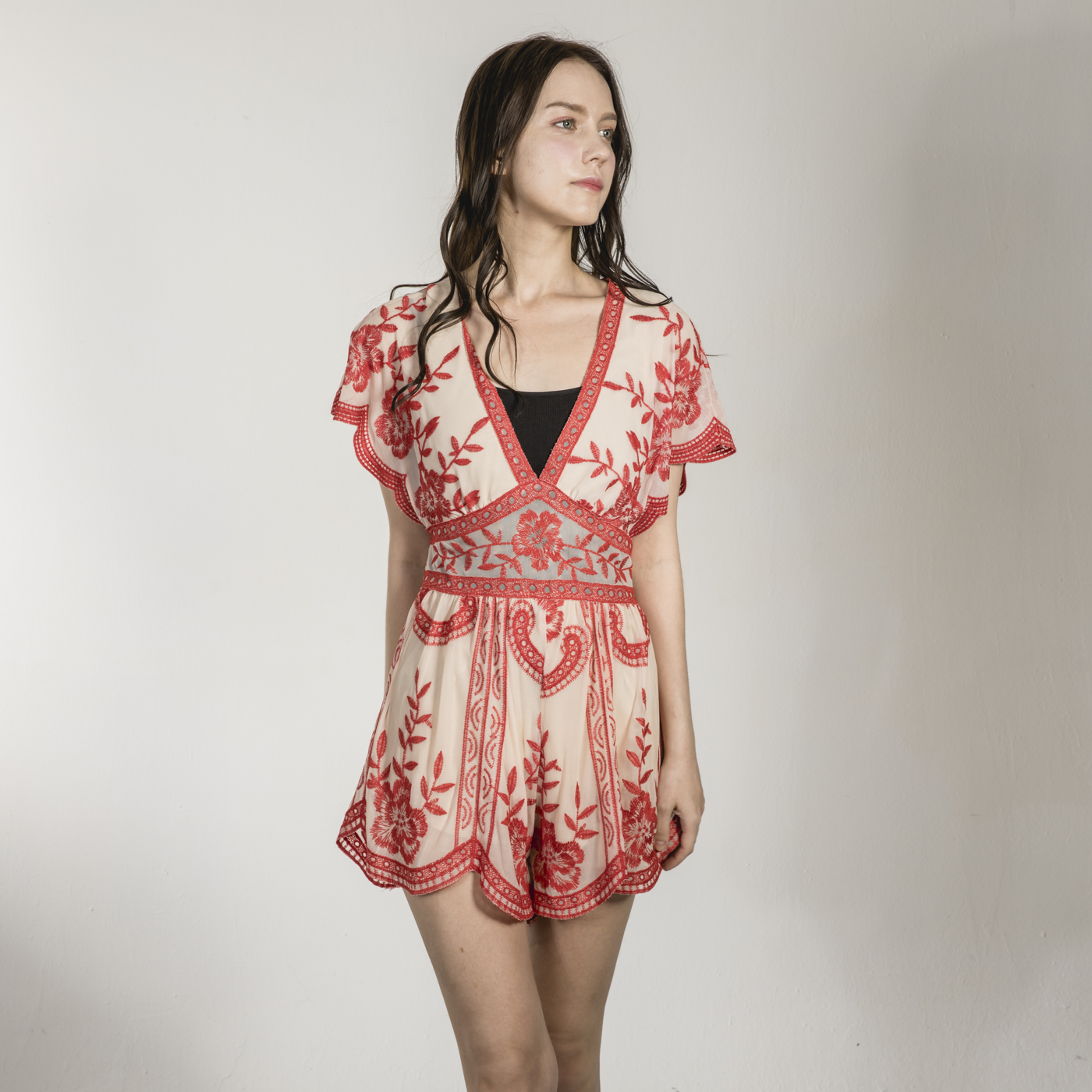 자수 디테일이 아름다운 여성스럽고 섹시한 플레이수트입니다.