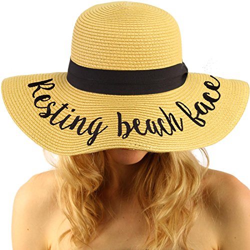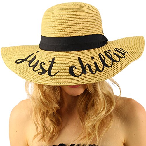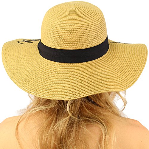 | Fun Verbiage Elegant Wide Brim 4" Summer Derby Beach Pool Floppy Dress Sun Hat |