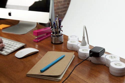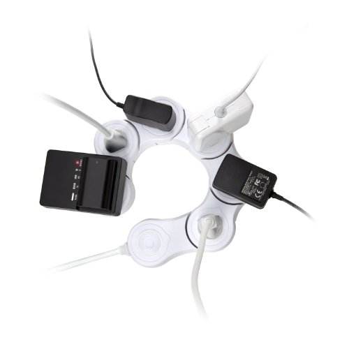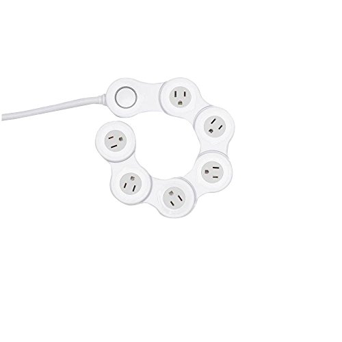 Quirky PVP-1-WGY Pivot Power 6 Outlet Flexible Surge Protector Power Strip - White/Grey